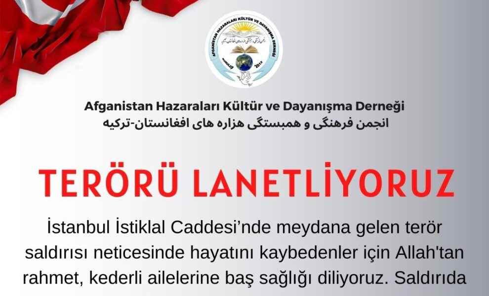 İstanbul İstiklal Caddesi’nde meydana gelen terör saldırısı neticesinde 6 kişi hayatını kayıp etti, 81 kişi yaralandı. Bu terör eylemini, Türkiye’nin dünya siyasetindeki konumunu zayıflatmak için tasarlanmış sinsi bir planın parçası olarak görüyoruz. Kendi adıma ve Hazara Türkleri adına, Afganistan Hazaraları Kültür Ve Dayanışma Derneği adına terörü lanetliyoruz ve hain terör saldırısını en şiddetli şekilde kınıyoruz. […]